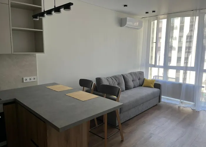 На оснащённой всем необходимым кухне апартаментов есть чайник и духовка. Автобусная станция Автовокзал "Теремки" находится в паре минут ходьбы от апартаментов.